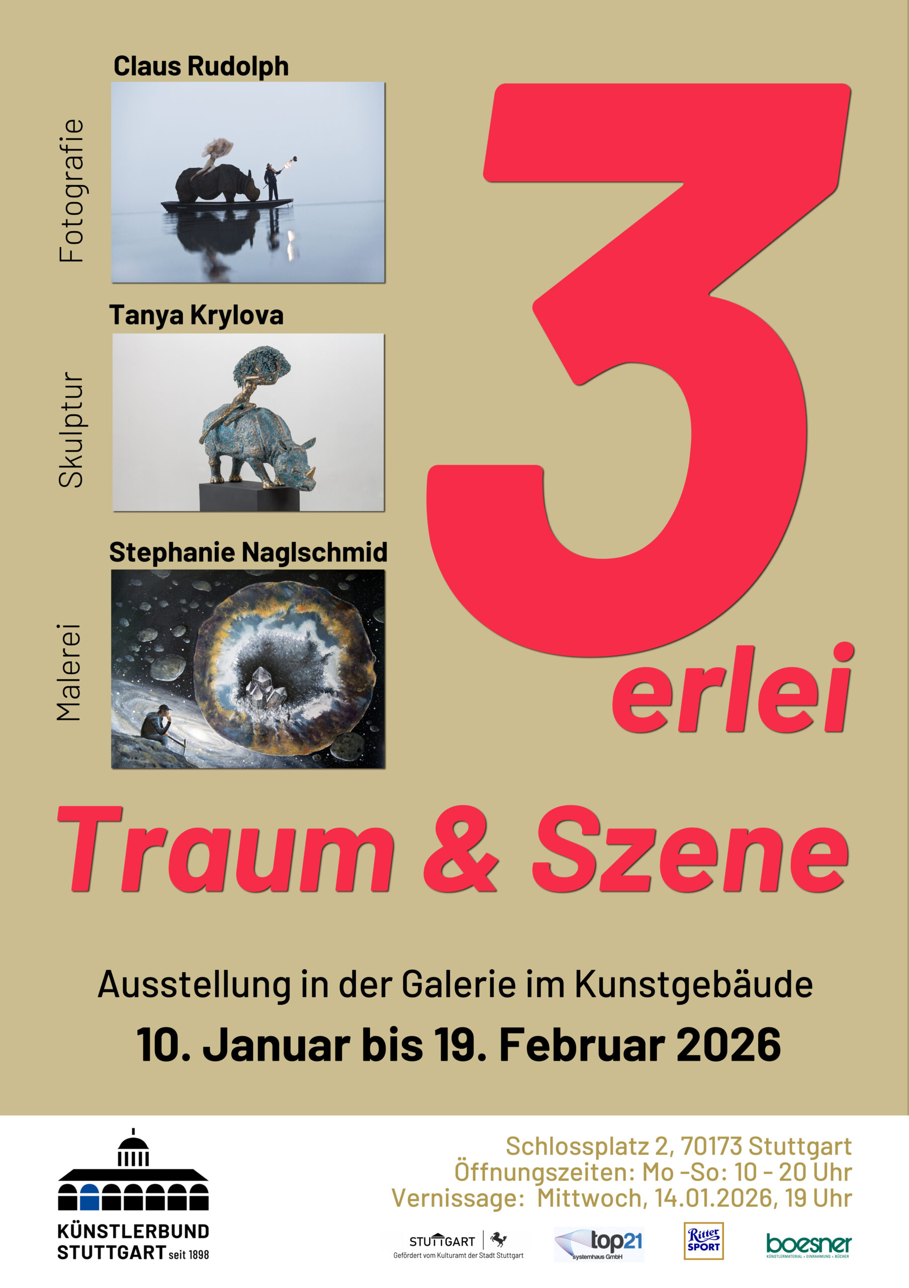 3erlei – Traum & Szene vereint Malerei, Fotografie und Skulptur zu einer vielschichtigen Erzählung zwischen Realität und Vision.